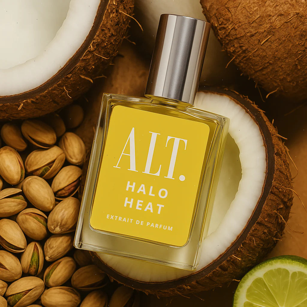You're a vapor lingering on the beach, the faded memory of the sun gently touching your back, a mirage floating on a bright dune near the horizon. Halo Heat. Inspired by Soleil Blanc.